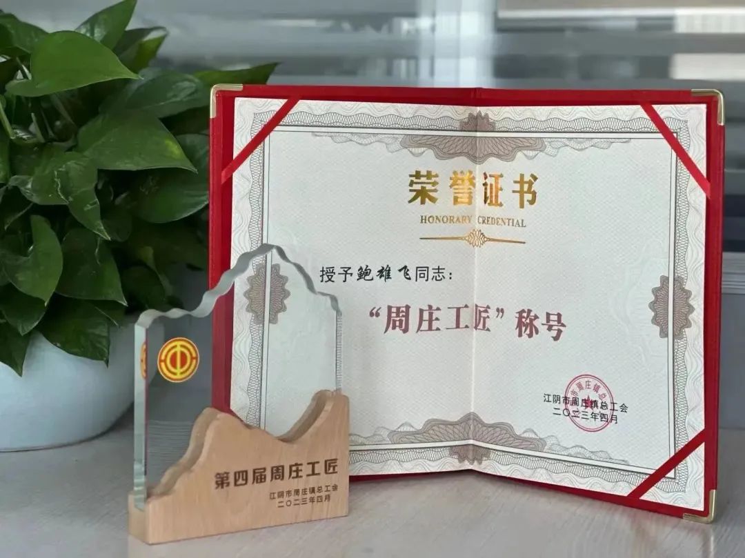 热烈祝贺我司员工鲍雄飞荣获“第四届周庄工匠”称号。