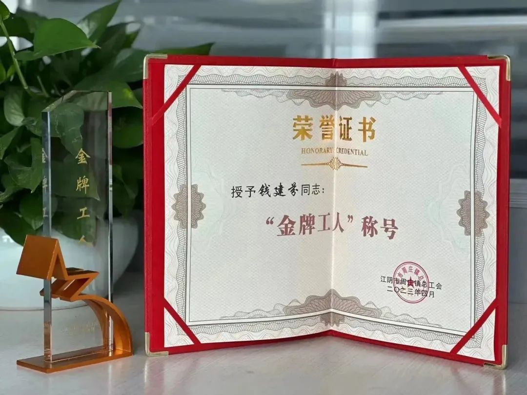 热烈祝贺我司员工钱建芬荣获“周庄镇2022年度金牌工人”称号。