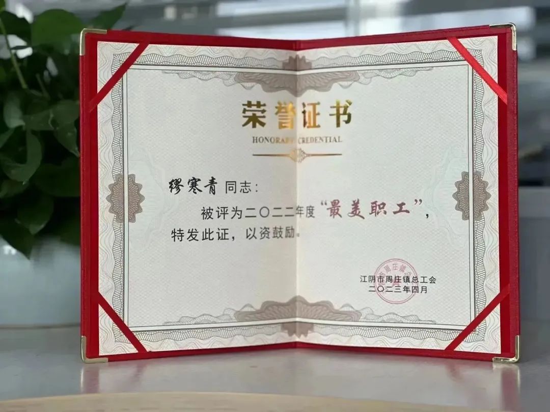 热烈祝贺我司员工缪寒青获评“周庄镇2022年度最美职工”。